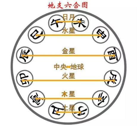 《蠡海集》曰:“阴阳家地支六合者,日、月会于子则斗建丑,日、月会于丑则斗建子,故子与丑合;日、月会于寅则斗建亥,日、月会于亥则斗建寅,故寅与亥合;日、月会于卯则斗建戍,日、月会于戍则斗建卯,故卯与戍合;日、月会于辰则斗建酉,日、月会于酉则斗建辰,故辰与酉合;日、月会于巳则斗建申,日、月会于申则斗建巳,故巳与申合;日、月会于午则斗建未,日、月会于未则斗建午,故午与未合”。
