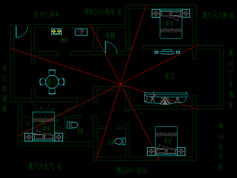 卧室床头朝向规划,东南向纳文气