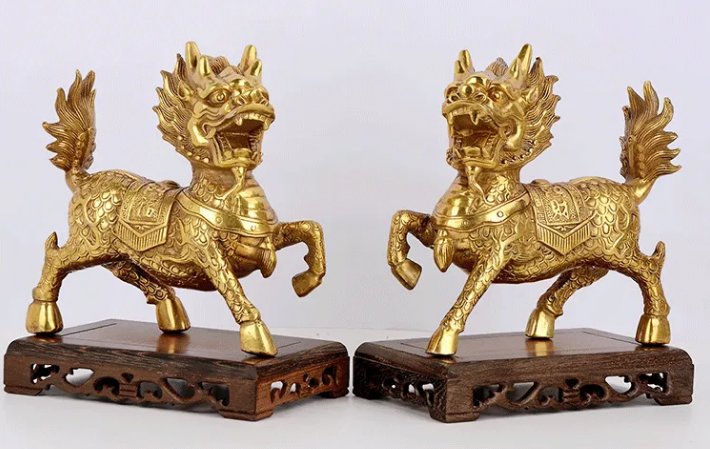 放置在大门口便最为恰当,也没有方向之分,更不会因为摆放不当而令你交上霉运,头向外即可,其势甚劲,宅主财运必佳。如果是一对铜麒麟,摆放在公司办公桌上,头朝门口,尾朝自己。雌雄的话,一左一右就行。