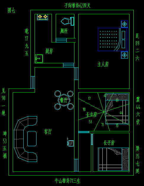 居家别墅前方之左右,有二直长屋,名:拖车屋,主退败、破财。