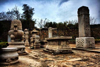 4、上风上水的原则 墓地也讲究“上风上水”,北京上风上水方向是西北,所以明代十三陵就坐落于北京西北的昌平区。西北是根据北京的中轴线确定的,这条中轴线北起鼓楼,经过故宫博物院,前至南门,南至永定门,中心点就是故宫,也称紫禁城。