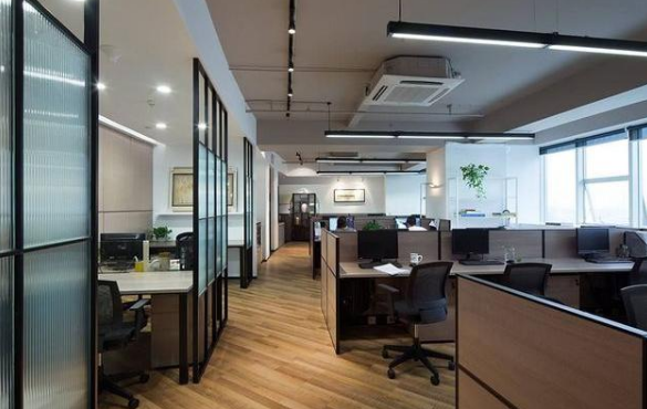 外间文员室的墙上,有企业操作图板、流程图等,给客人有一个直观的对企业的了解,便于接下来与老板的交流。文员室内花盆、景致应多一些,保护室内空气的新鲜,使客人有愉悦感。内外间中间的墙体不宜用透明的玻璃,而要封闭效果的,产生一种神秘的含蓄的氛围效果。